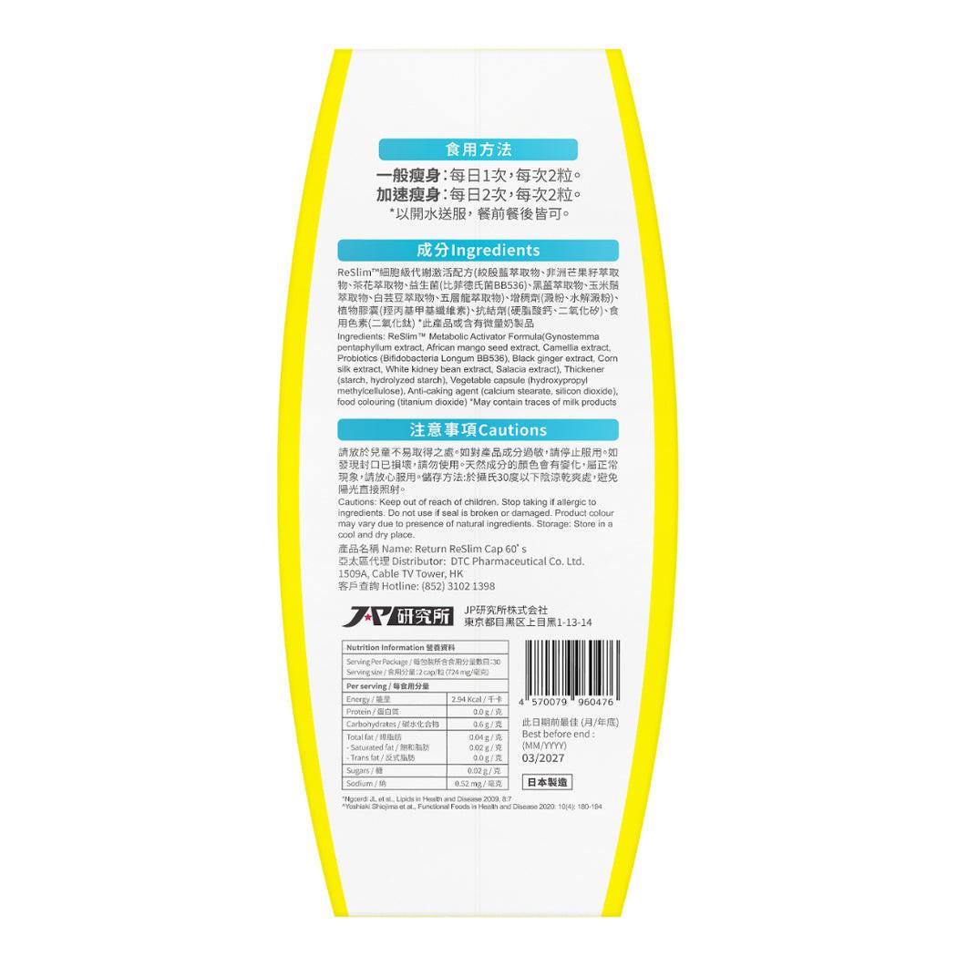 【香港科研突破】Return 回本 ReSlim細胞級代謝配方 60粒|激活粒線體・提升燃脂效率・專利成分|泰好批全球速遞