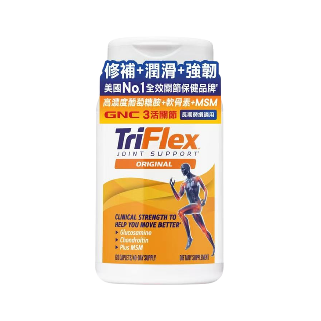 作為美國No. 1全效關節保健品牌#,GNC 3活關節含有臨床強度的葡萄糖胺和軟骨素,全面支持關節健康。葡萄糖胺和軟骨素雙效促進關節組織健康,提升關節靈活性。 配方特別加入MSM,更有效強韌關節,預防關節磨損。